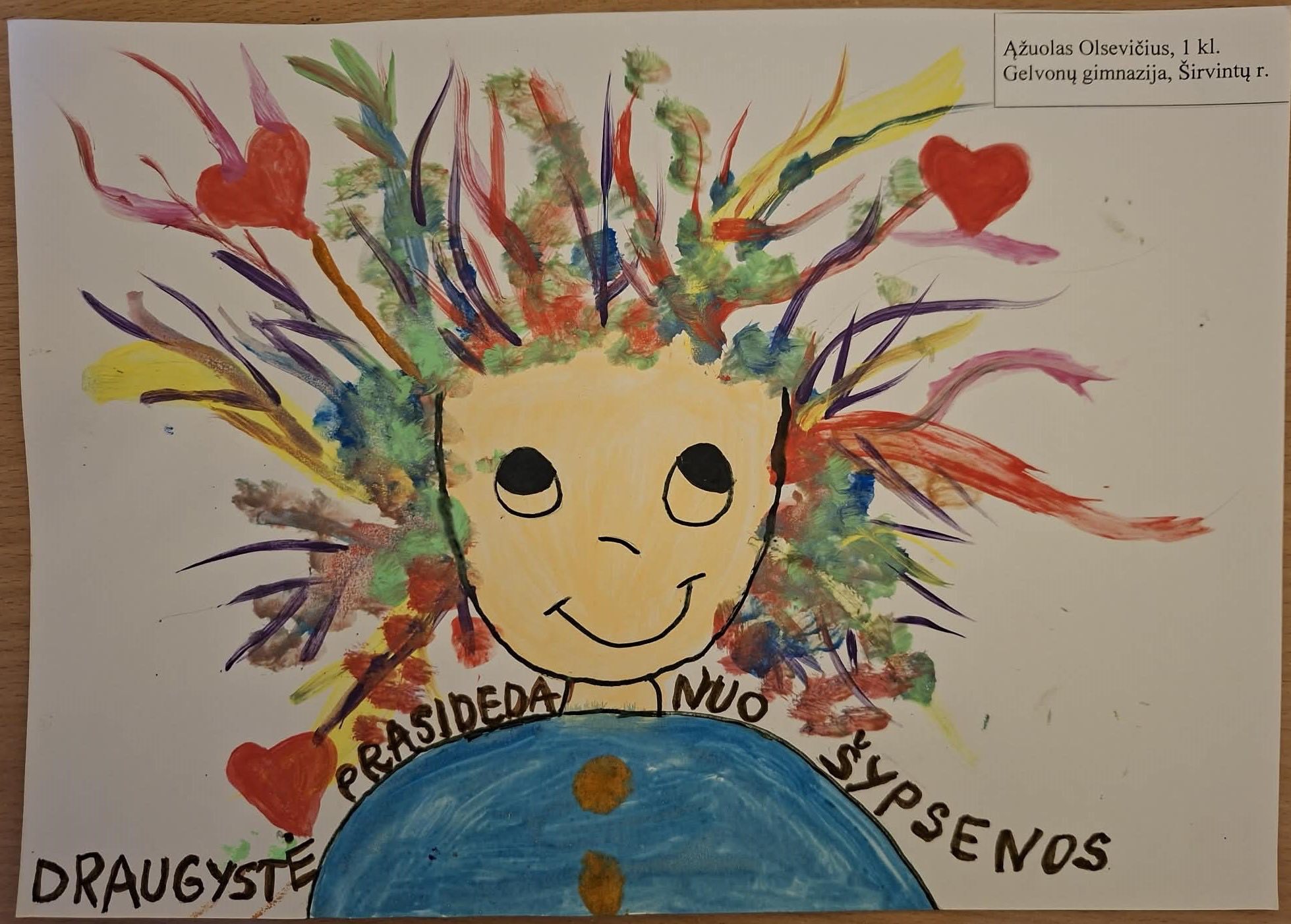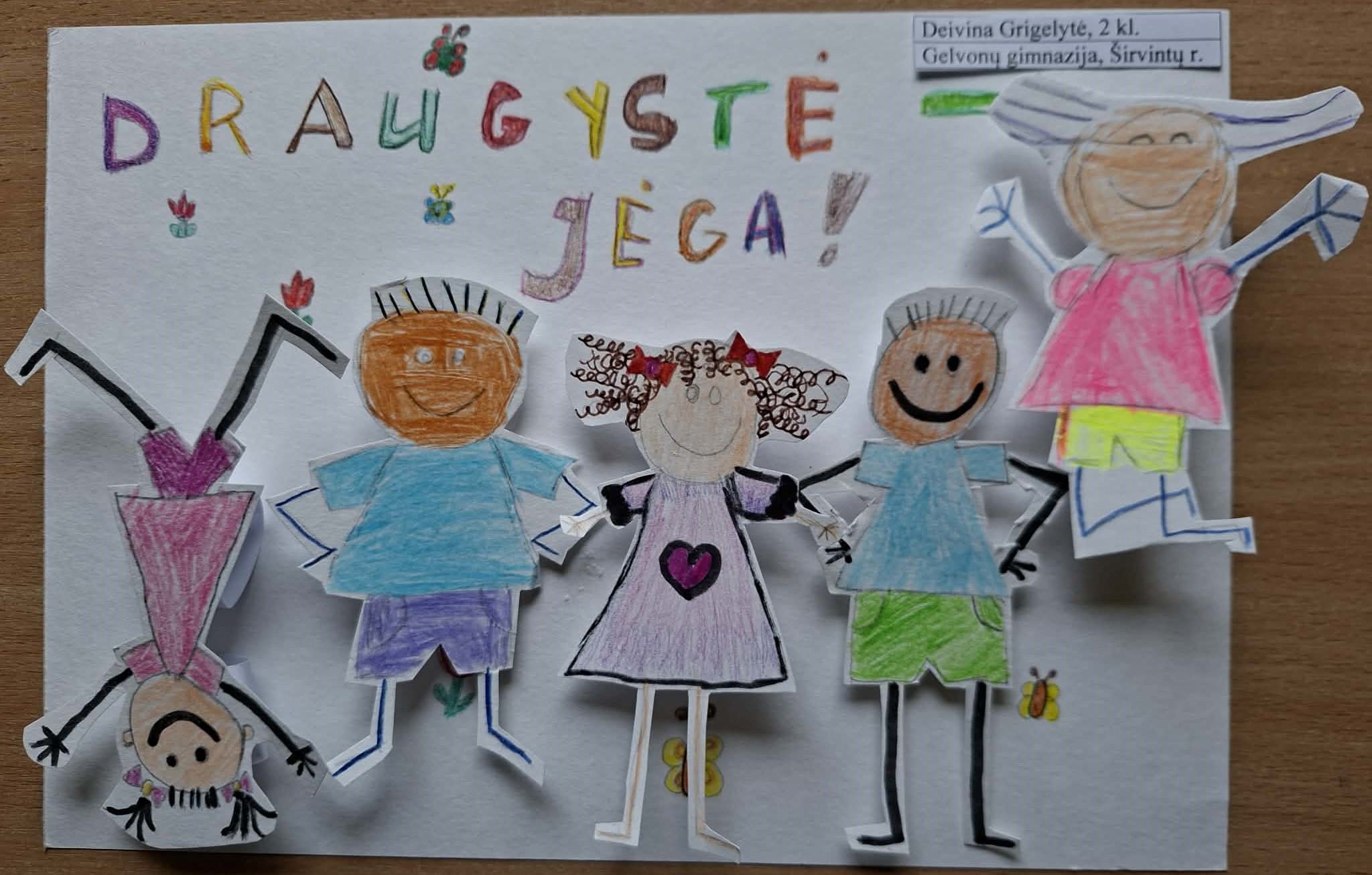 Gelvonų gimnazijos pradinių klasių mokiniai dalyvauja respublikiniame 1-4 kl. mokinių kūrybinių darbų konkurse – parodoje „AŠ UŽ DRAUGYSTĘ, O NE PATYČIAS!“