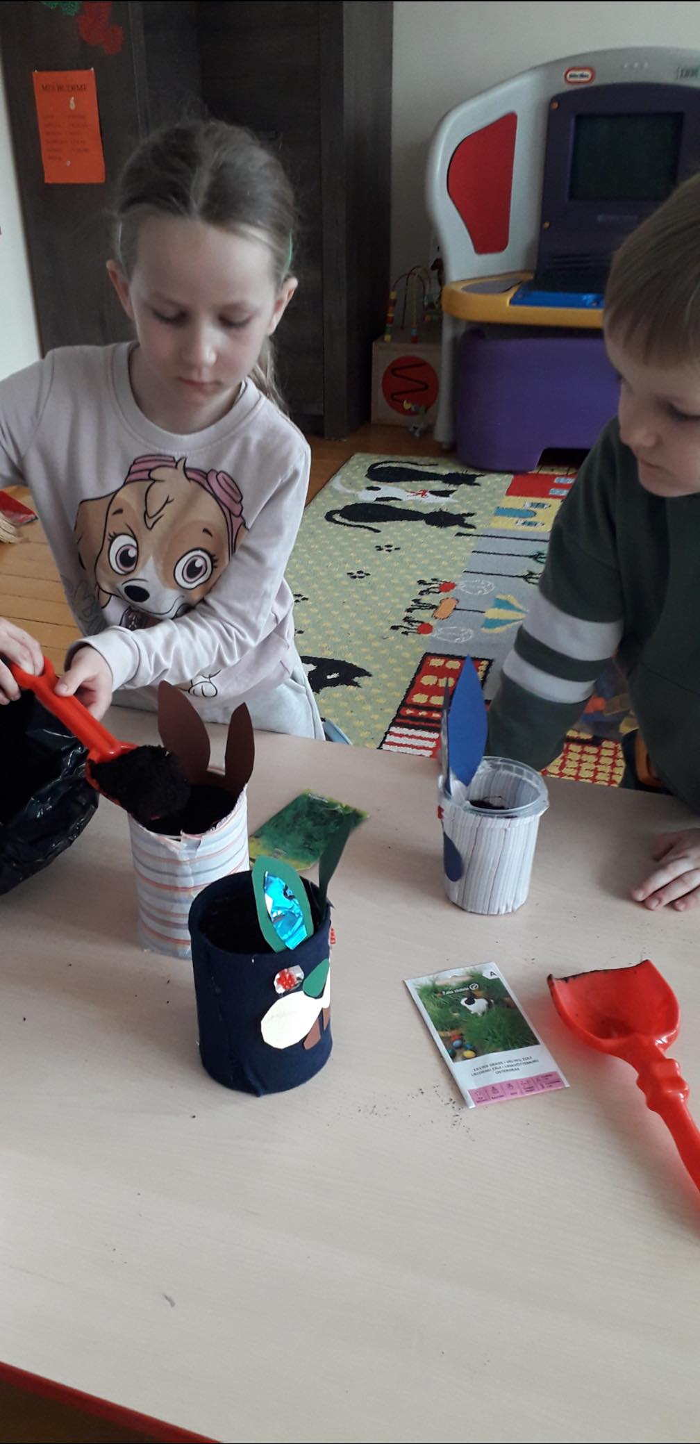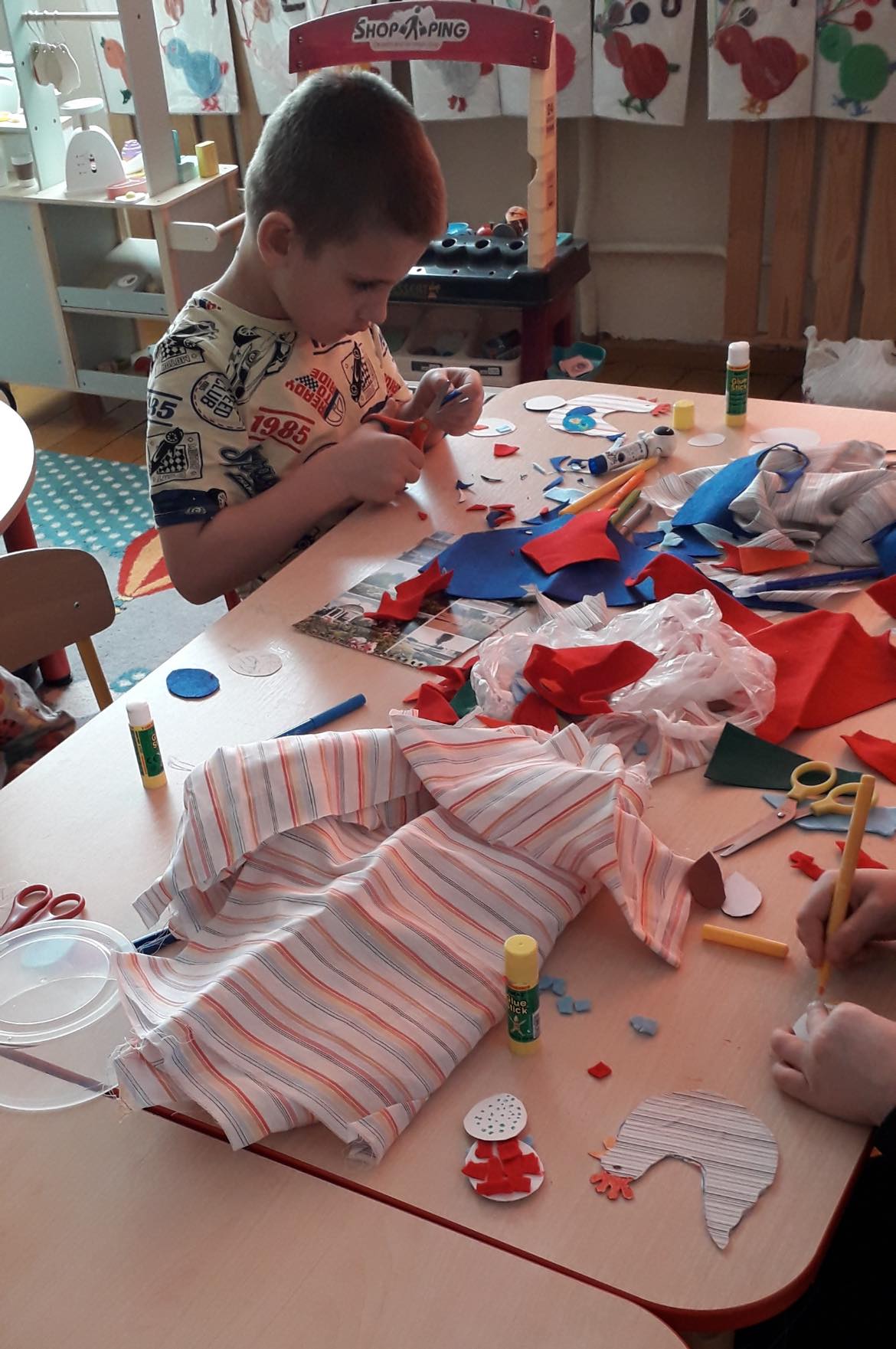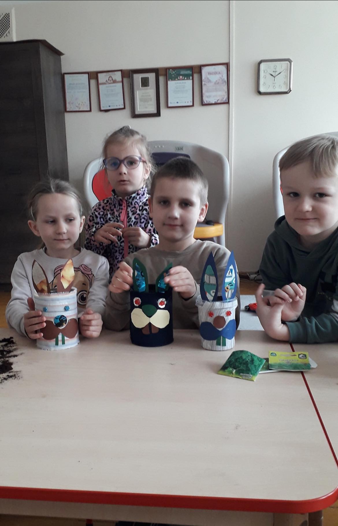 Laukdami šv. Velykų, mūsų mažųjų kūrėjų rankos senus daiktus pavertė kūryba ir prikėlė naujam gyvenimui. Darželinukai (mokytoja Regina Miknevičienė) dalyvavo „Žaliojo raštingumo” dirbtuvėse ir iš antrinių žaliavų gamino spalvingas, originalas Velykų dekoracijas: vištaites su kiaušiniais ir zuikučius, kurių pasėti „plaukučiai” dar turi sudygti ir užaugti. Darbeliams buvo naudojami įvairūs karoliukai, tekstiles atraižos, dėžių kartonas, skardinės nuo kavos, sagos, kombinuotos pakuotės. Vaikai lavino savo vaizduotę, kūrybiškumą bei ugdė atsakingą požiūrį į mūsų planetos saugojimą.