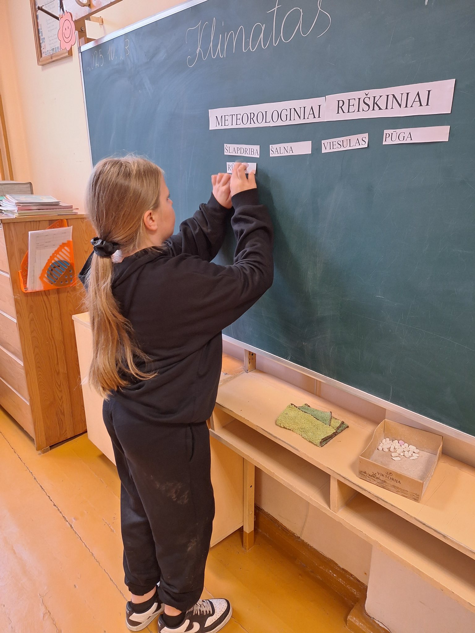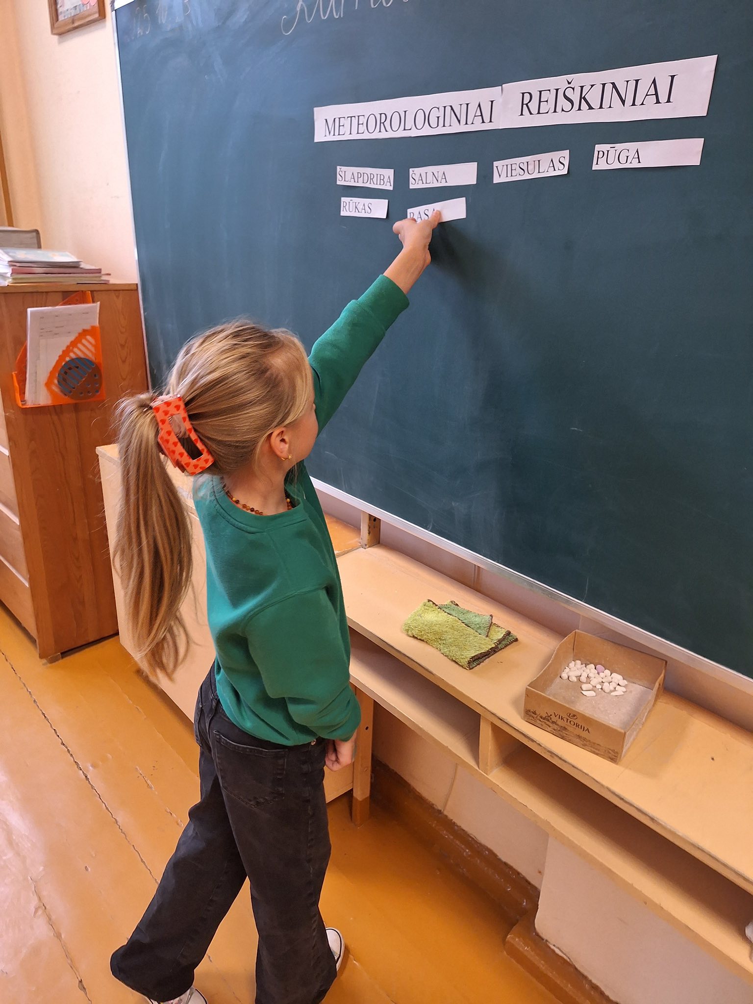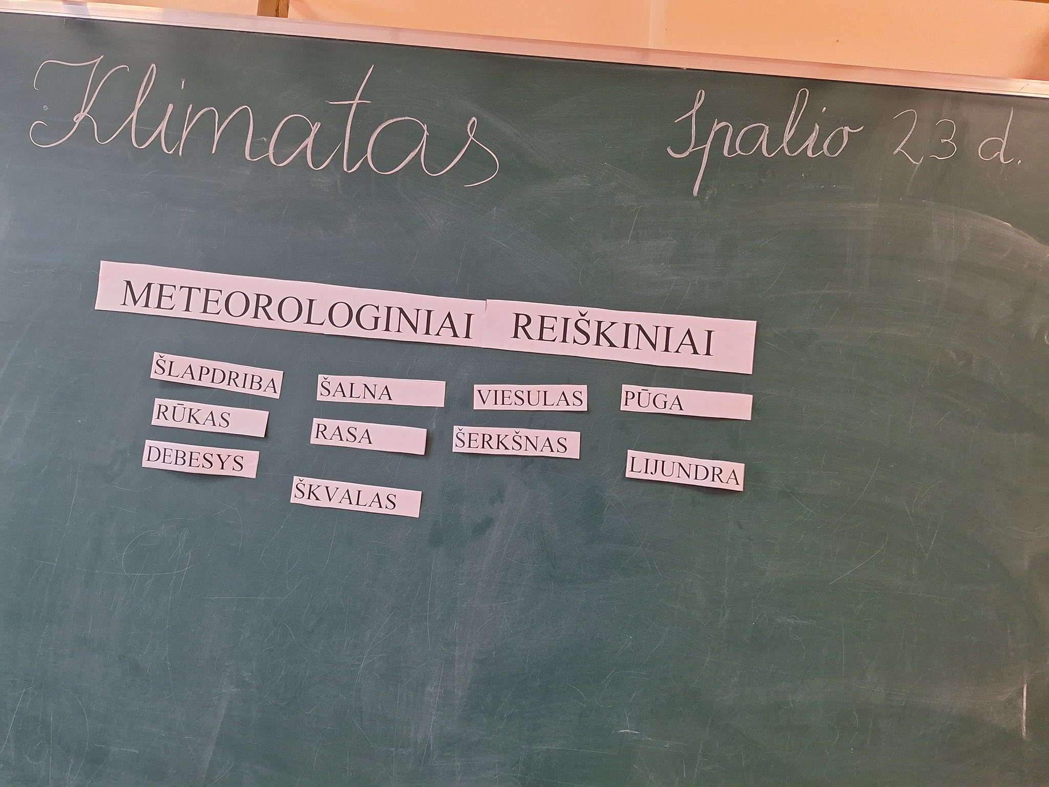 Mūsų pradinukai spalio 23 d. susirinko į STEAM pamoką. Visą savaitę mokiniai rinko informaciją, stebėjo gamtą ir darė spėjimus apie orų kaitą. Vėliau tyrinėjo žemėlapį ir padarė išvadas apie skirtingų šalių (Suomijos, Lietuvos, Graikijos) orų pokyčius. Atliko eksperimentą ir atsakė į klausimą „Kodėl lango stiklas visada šaltas?“ Pagal aprašymus nustatė meteorologinius reiškinius būdingus savo kraštui. Pamokoje buvo siekiama atkreipti dėmesį į klimato kaitą, mūsų aplinkai būdingus reiškinius ir žmogaus poveikį, bei prisitaikymą prie klimato kaitos.