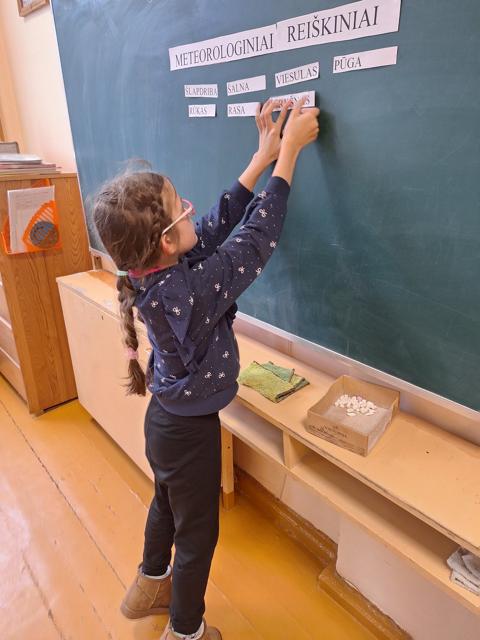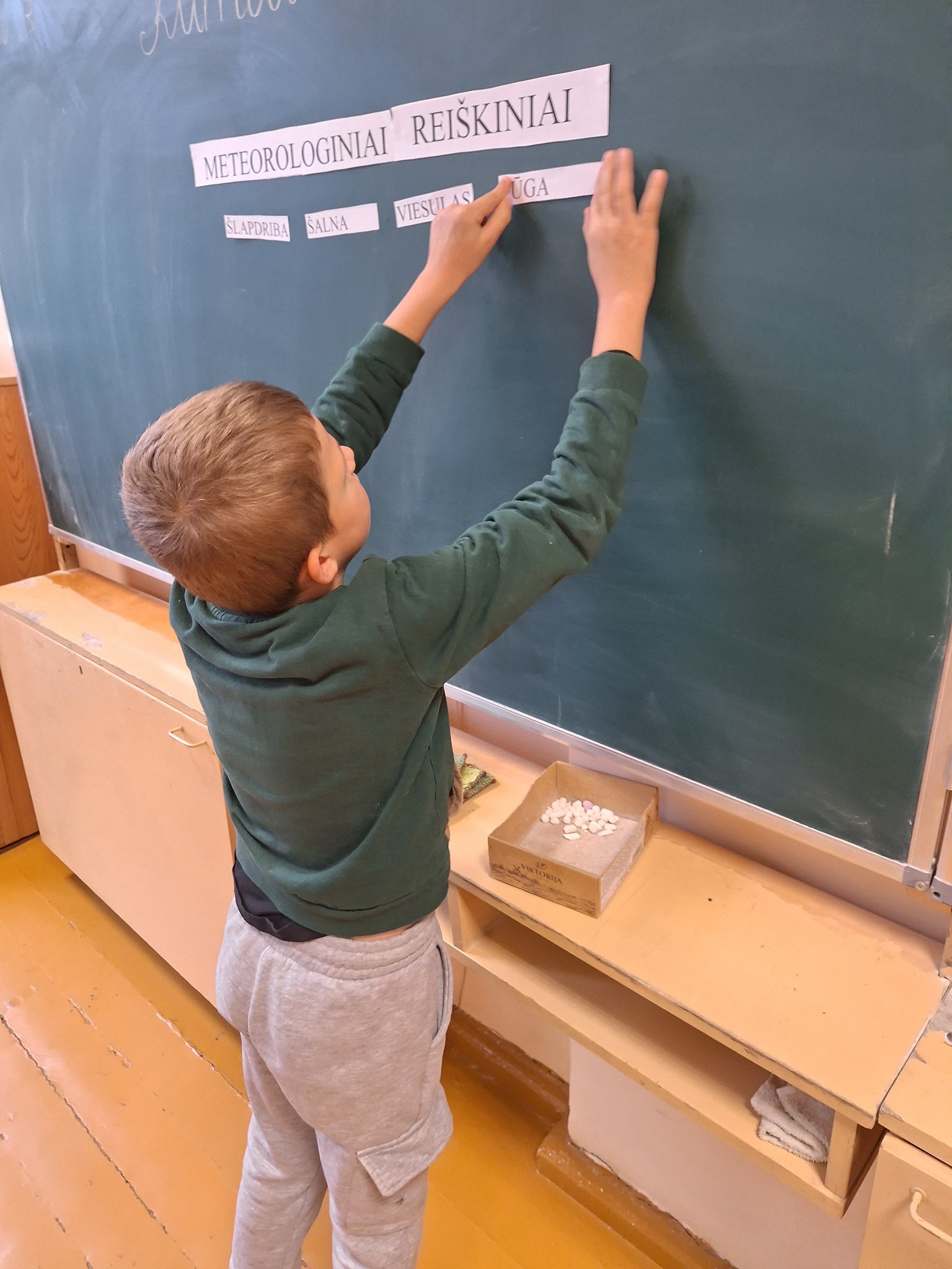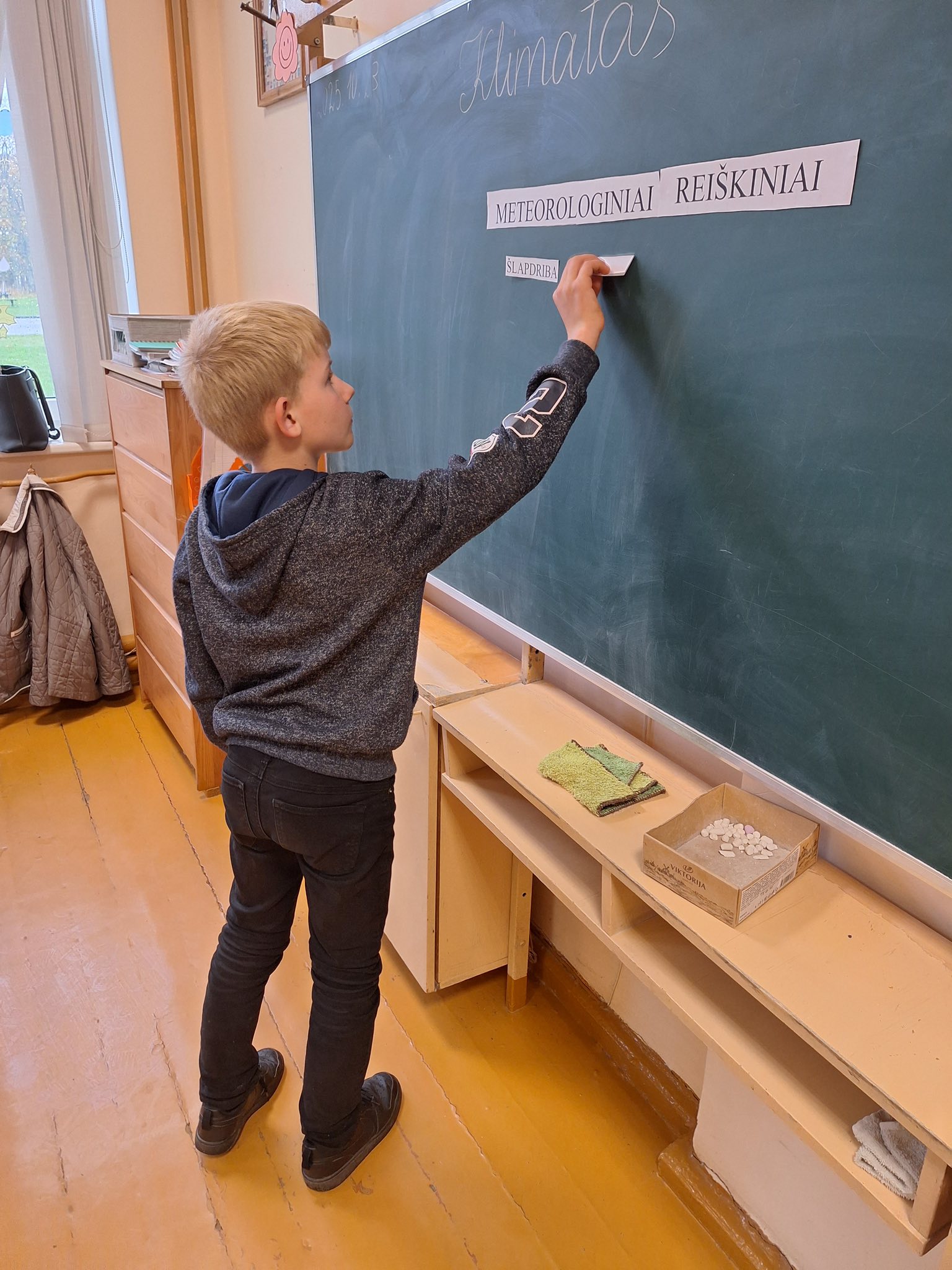 Mūsų pradinukai spalio 23 d. susirinko į STEAM pamoką. Visą savaitę mokiniai rinko informaciją, stebėjo gamtą ir darė spėjimus apie orų kaitą. Vėliau tyrinėjo žemėlapį ir padarė išvadas apie skirtingų šalių (Suomijos, Lietuvos, Graikijos) orų pokyčius. Atliko eksperimentą ir atsakė į klausimą „Kodėl lango stiklas visada šaltas?“ Pagal aprašymus nustatė meteorologinius reiškinius būdingus savo kraštui. Pamokoje buvo siekiama atkreipti dėmesį į klimato kaitą, mūsų aplinkai būdingus reiškinius ir žmogaus poveikį, bei prisitaikymą prie klimato kaitos.