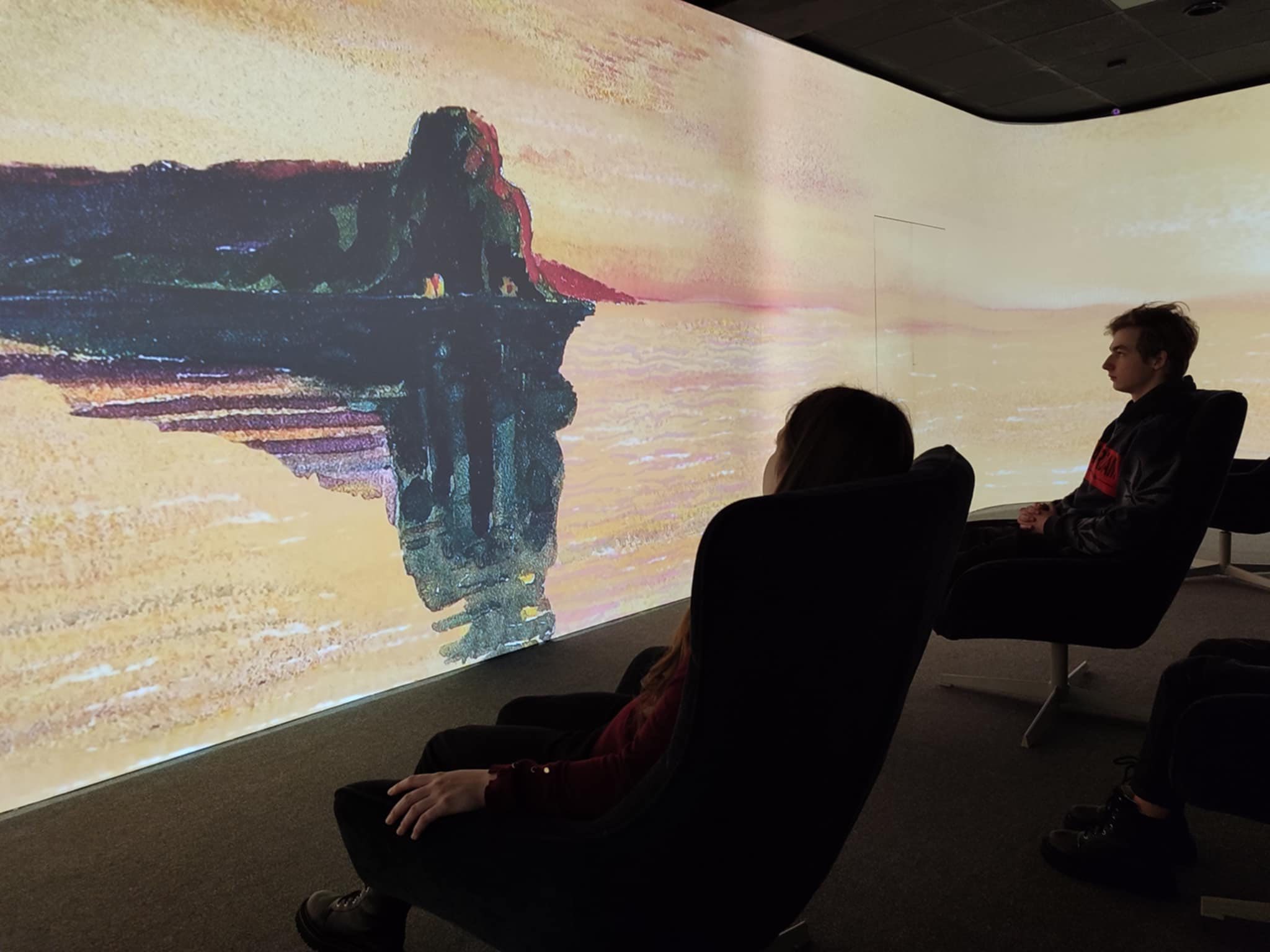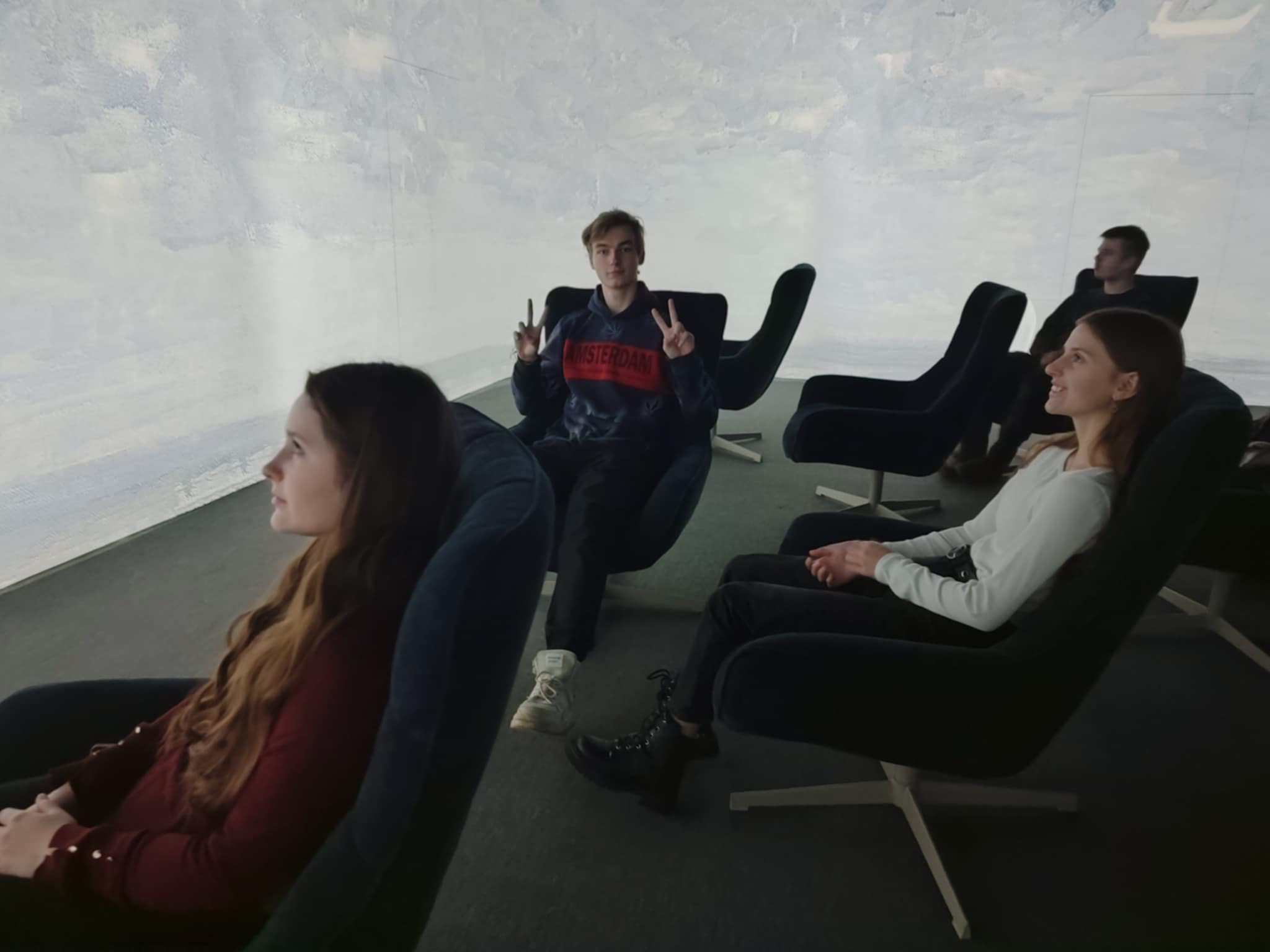 Gruodžio 4 d. gimnazijos IIIg ir IVg klasių mokiniai, lydimi auklėtojų Jūratės Garnienės ir Linos Muleronkaitės, lankėsi Vilniuje, Pojūčių meno centre. Čia jie žiūrėjo daugybę apdovanojimų pelniusį virtualios realybės filmą „Pasaulių sukūrimas“, sukurtą pagal M.K.Čiurlionio kūrybą.