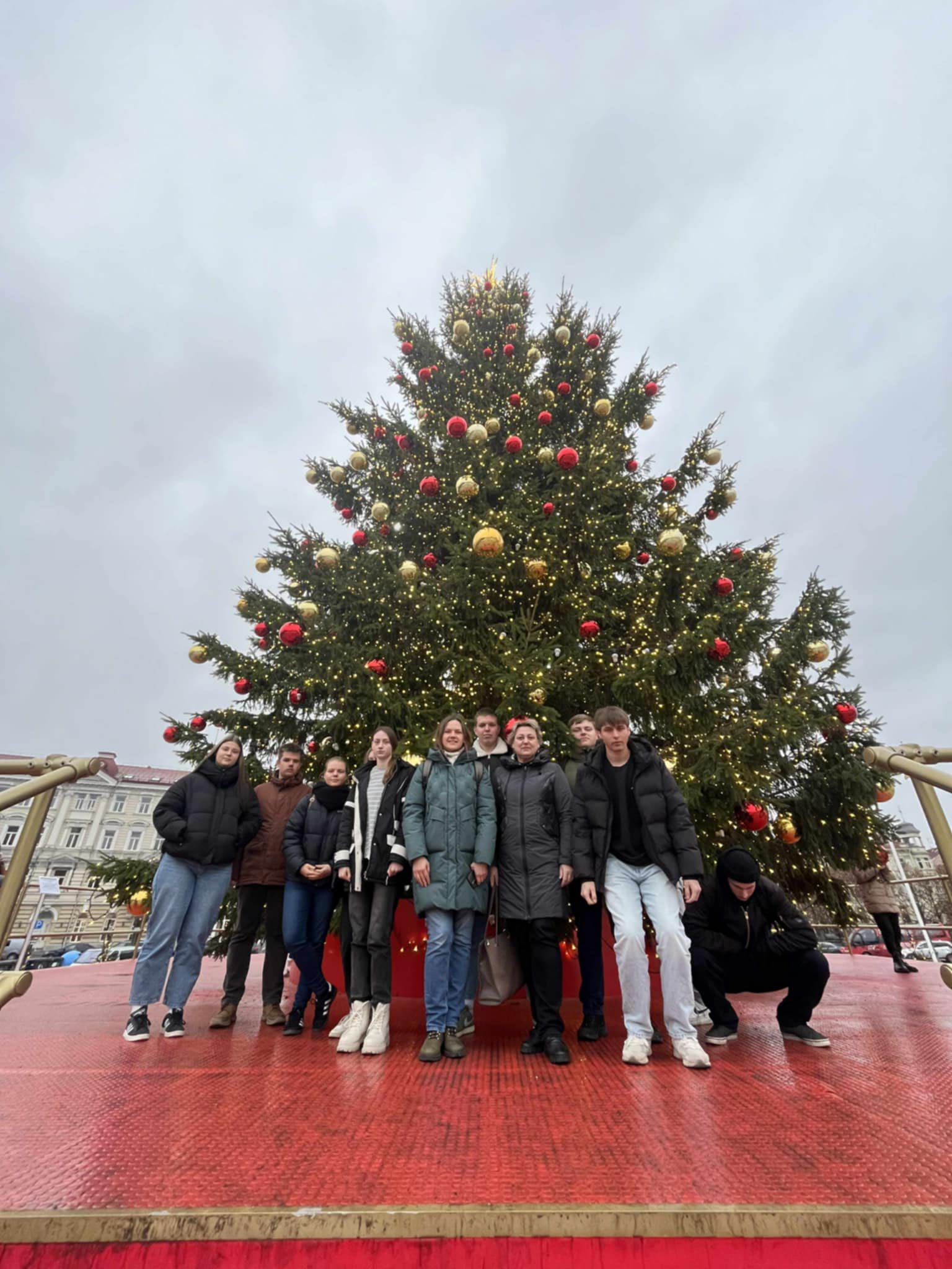 Ir žinoma, pasinaudodami proga, mokiniai apžiūrėjo Vilniaus miesto kalėdinę eglę.