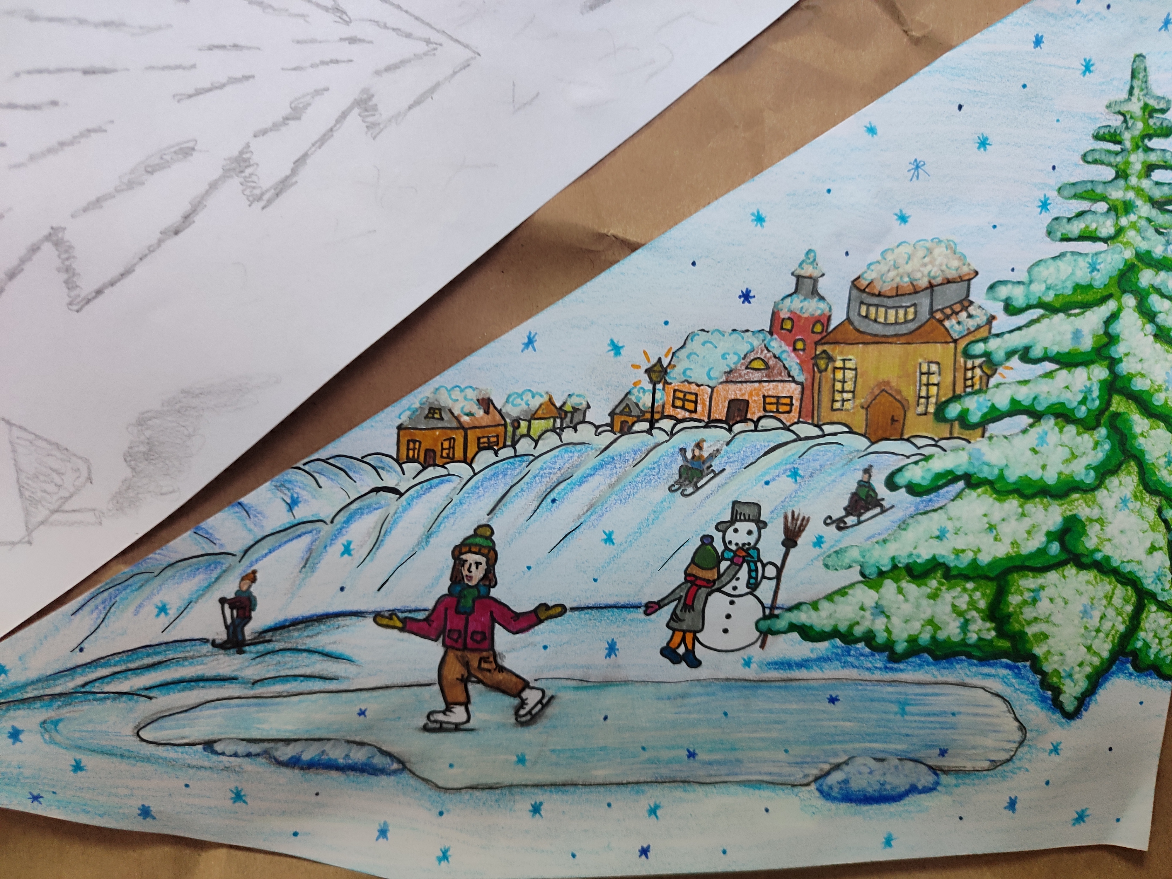 Visą gruodžio mėnesį gimnazijos 1–12 klasių mokiniai dalyvavo kūrybinėje veikloje – piešė piešinius tema „Žiema stiklo šukėje“. Ši neįprasta tema įkvėpė vaikus vaizduoti žiemos grožį tarsi pro sudužusio stiklo fragmentą: snieguotas kraštovaizdžius, šerkšnotus medžius, snaiges ir kalėdinius motyvus. Mokiniai savo darbuose atskleidė, kaip jie mato žiemą – pilną stebuklų, spindesio ir paslaptingumo. Tokios veiklos ne tik ugdo kūrybiškumą, bet ir padeda mokiniams geriau pajusti žiemos švenčių dvasią, motyvaciją ir labai sveiką konkurenciją. Nugalėtojus paskelbsime iki Šv. Kalėdų! Pasigrožėkite, kaip kūrybiškai mokiniai pamatė žiemą!