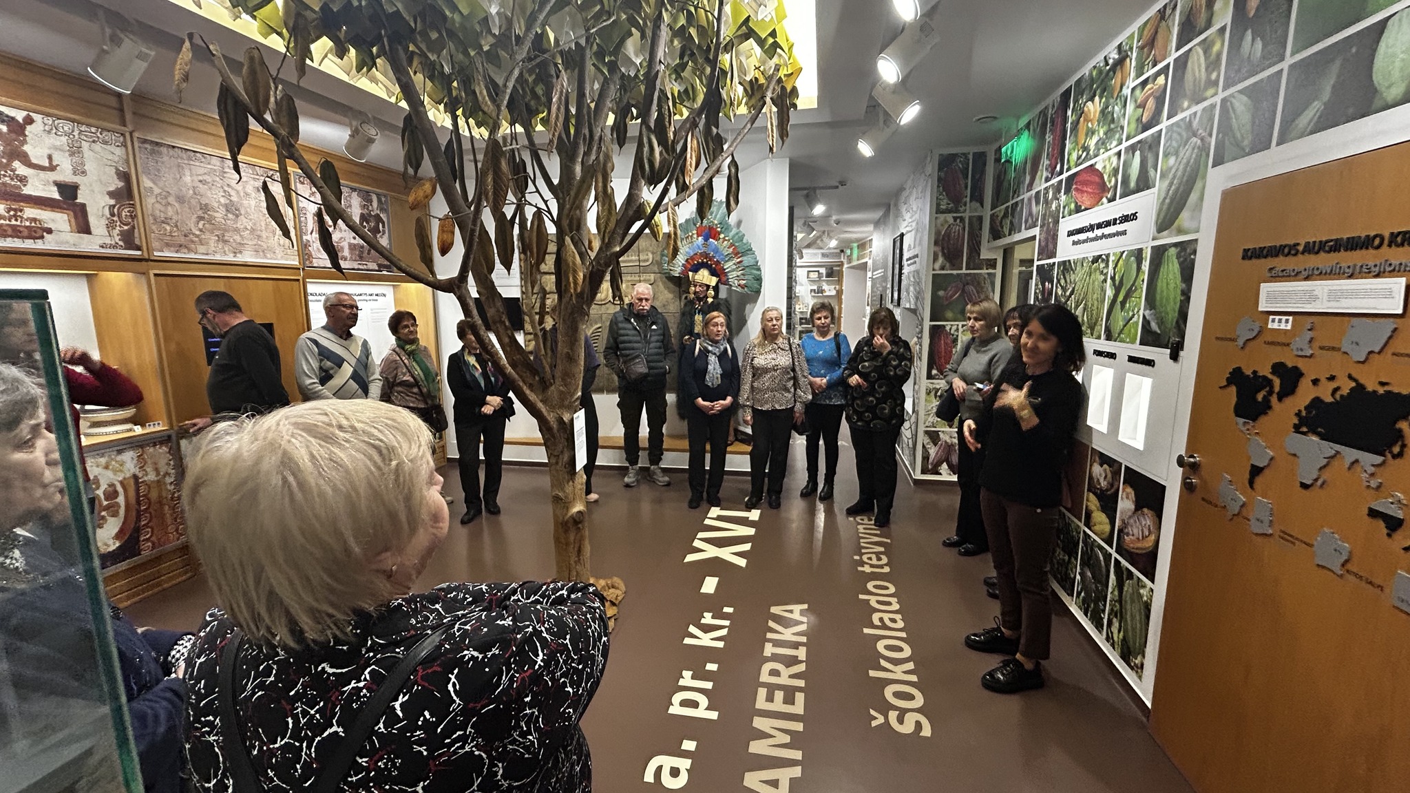 Siekdami plėtoti mokinių kultūrines kompetencijas, mokytojai privalo ir patys susipažinti su kitokia aplinka – aplankyti kitus miestus, lankytis muziejuose, domėtis gamtos, kultūros, istorinės reikšmės objektais. Mokytojo profesija reikalauja nuolatinio atsinaujinimo – idėjų, metodų, įkvėpimo. Todėl, kai turime galimybę pakilti nuo kasdienės lentos ir išvykti ten, kur galime pamatyti, sužinoti ar išbandyti kažką naujo, mes susikrauname kuprines. Tad ankstyvą lapkričio 4 d. rytą gausus gimnazijos mokytojų būrys leidosi į pažintinę kelionę – išvyką į Šiaulius. Aplankę Talkšos ežero pakrantėje esančią Geležinę lapę ir pasivaikščioję po Saulės laikrodžio aikštę, kelionę pratęsė „Rūtos“ šokolado muziejuje. Kai 1913 metais Šiaulių centre ant mažo medinio namelio pasirodė iškaba „Rūta“ ir dideliame katile Antanas Gricevičius pradėjo virti karamelę, niekas nesitikėjo, kad po daugiau nei 100 metų mažas namelis pavirs į vieną ilgiausiai veikiančių saldainių fabrikų ne tik Lietuvoje, bet ir Europoje. Ekskursijos metu mokytojai ne tik išgirdo daug įdomių faktų apie šokolado istoriją, turėjo progą paragauti kakavos pupelių, bet ir leidosi į nepakartojamą degustacinę kelionę, kurioje susijungė šokolado istorijos paslaptys ir unikalūs romo skoniai, sužinojo intriguojančias romo ir šokolado sąsajas, ragaudami ir derindami su „Rūtos“ meistrų sukurtais rankų darbo saldainiais. Tai buvo kelionė į skonio pasaulį, kupiną atradimų, istorijos ir gurmaniškų malonumų. Nuoširdžiai dėkojame Širvintų rajono savivaldybei ir merei Živilei Pinskuvienei už Mokytojo dienos dovaną.