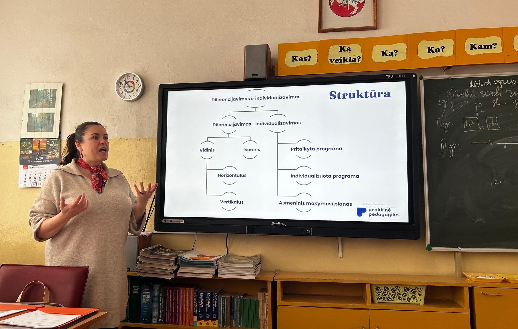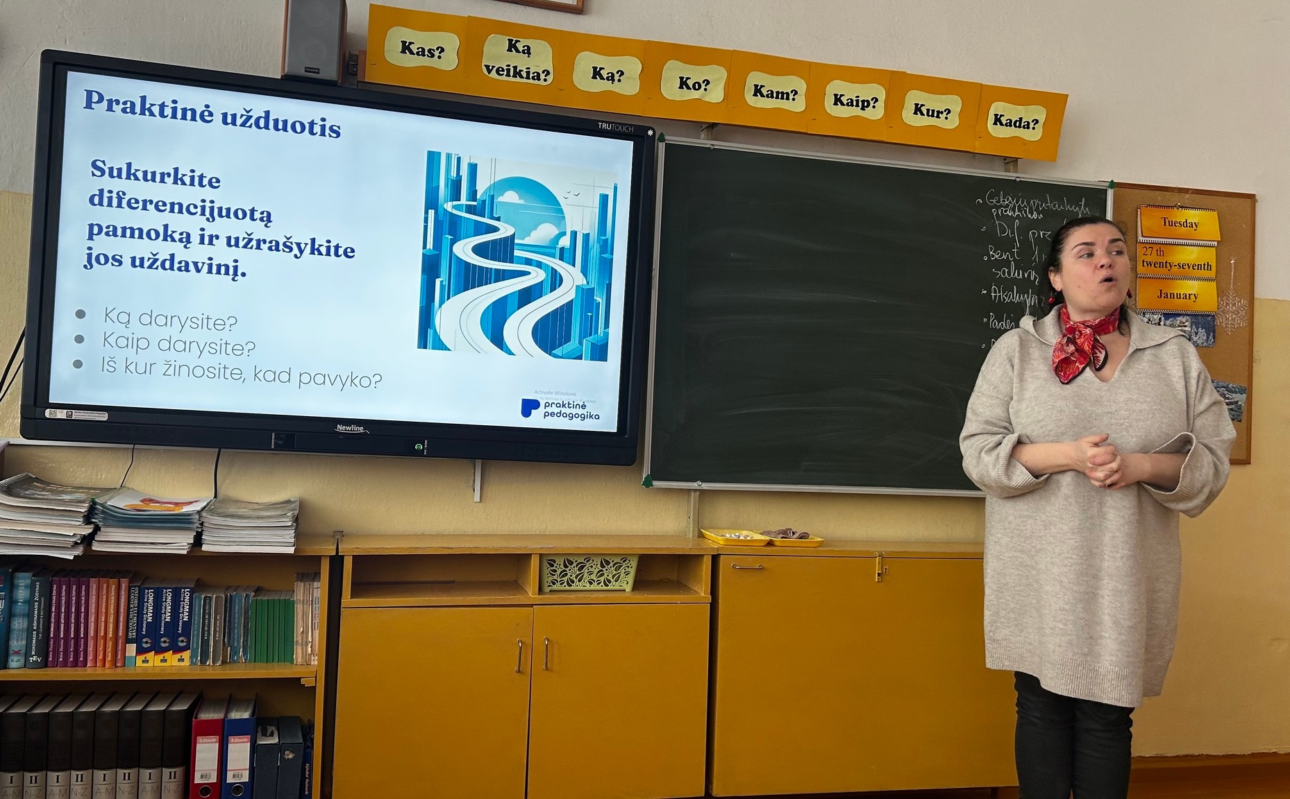 Kaip padėti mokiniui augti klasėje, kur kiekvienas skirtingas? Tokiu atveju mokytojo darbas tampa ne tik apie žinias, bet ir apie girdėjimą, matymą ir buvimą kartu su kiekvienu, ir augimą kartu su mokiniais. Šiandien gimnazijos mokytojai dalyvavo seminare „Diferencijavimas kaip sistema“, kurį labai patraukliai vedė mokymų centro „Praktinė pedagogika“ lektorė, švietimo konsultantė, lietuvių kalbos mokytoja Julija Glinskė. Seminaro metu mokytojai gilinosi į tai, kas iš tiesų padeda mokiniui jaustis matomam, sužinojo, kas yra išorinis ir vidinis diferencijavimas, kokie yra vertikalaus ir horizontalaus diferencijavimo privalumai ir trūkumai, aiškinosi ir praktiškai bandė diferencijuoti savo dėstomo dalyko pamokos turinį. Tai buvo „teoriškai įžeminta, praktiškai išbandyta, įkvepiančiai perteikta“.