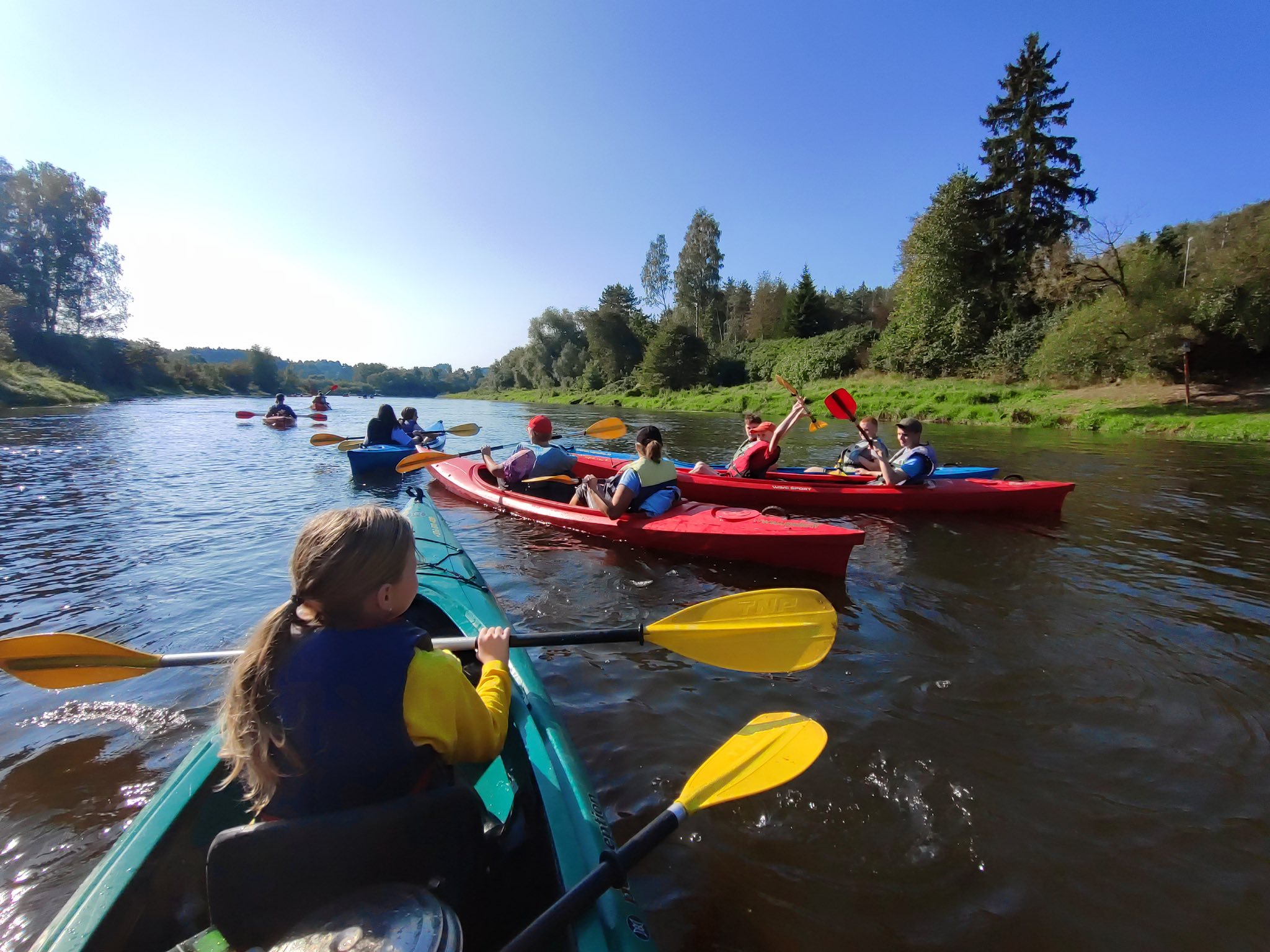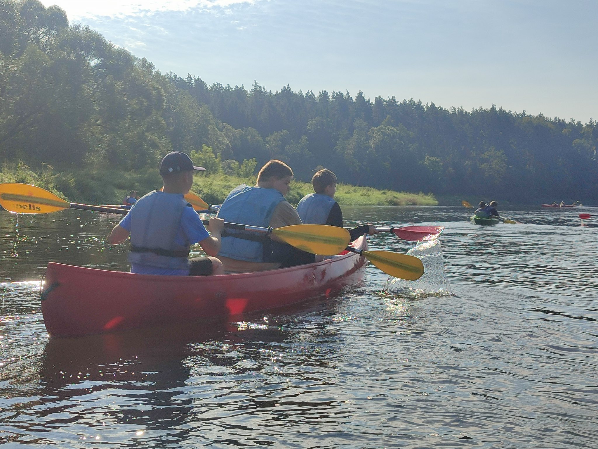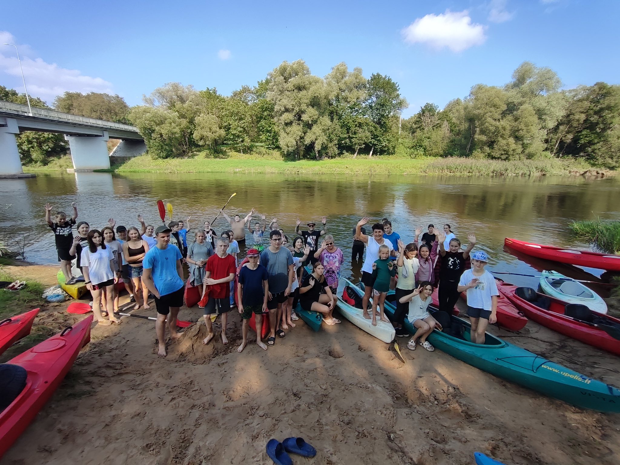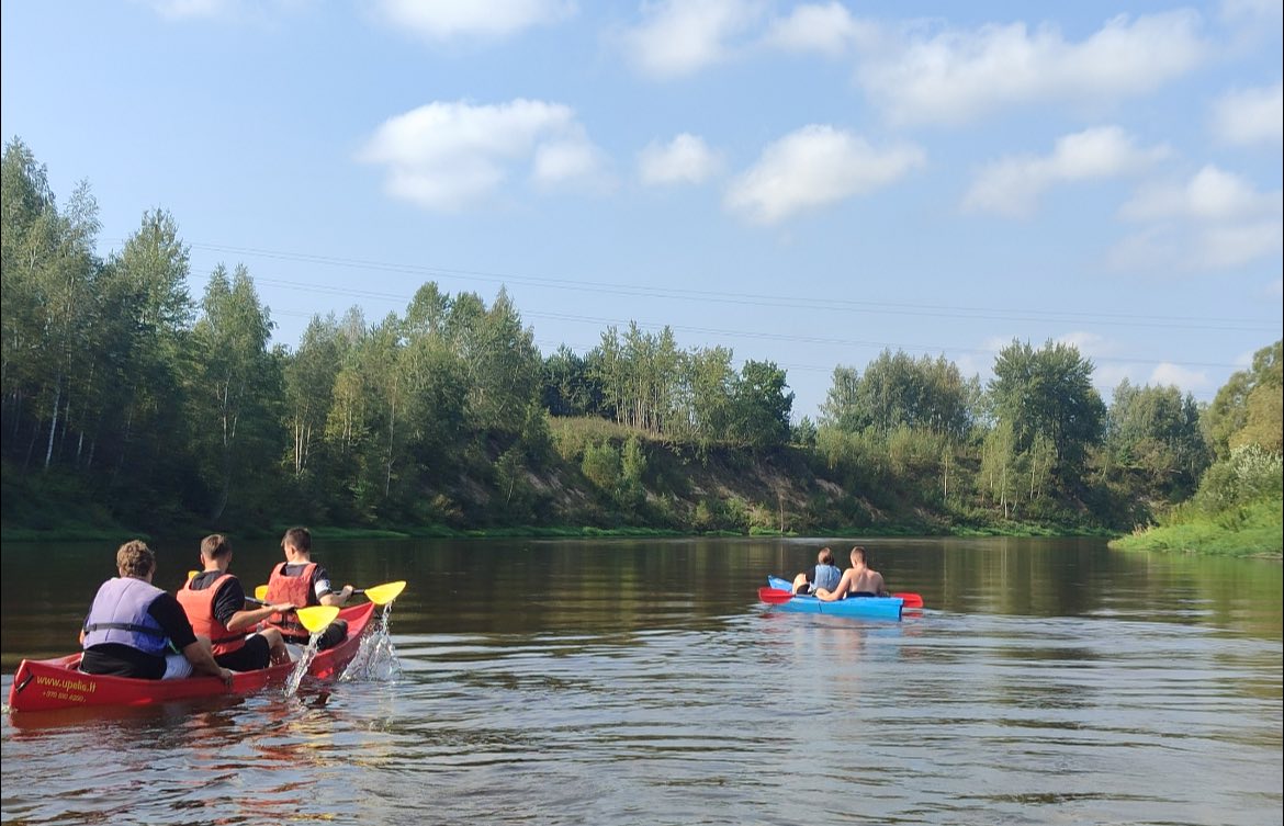 Šiandien buvo neįtikėtinai nuostabi pirmosios mokslo metų savaitės pabaiga. Pradėjome „Judumo savaitę“ – judėjimo ir aktyvaus gyvenimo skatinimo projektą. Plaukimas baidarėmis tapo pirmąją šio projekto veikla, į kurią įsitraukė net 50 vaikų ir mokytojų. Plaukimą Šventosios upe pradėjome Vepriuose, o pabaigėme Upninkuose. Kai kam tai buvo pirmoji plaukimo baidare pamoka, kai kam – pirmasis plaukimas Šventosios upe, tačiau visi finišą pasiekė stipriai patobulėję. Saulė, upė ir gera kompanija nepaliko abejingo nei vieno, norėjosi dar plaukti ir plaukti. Dėkojame plaukimą organizavusiai mokytojai Laimai Pabriežienei, lydėjusioms mokytojoms ir ypatingai ačiū už pagalbą kartu plaukusiam tėčiui Donatui Grigeliui.