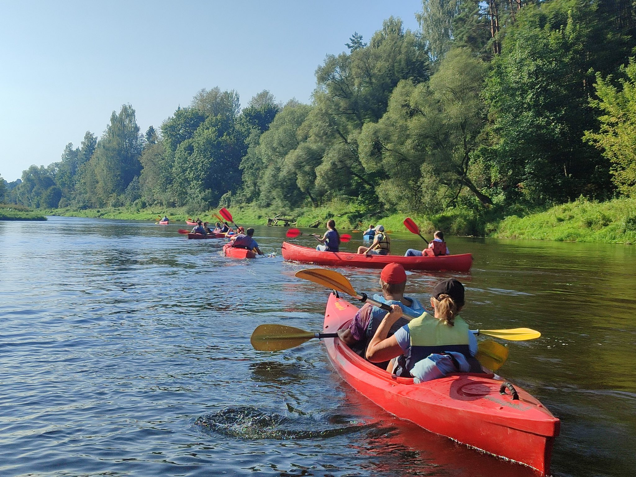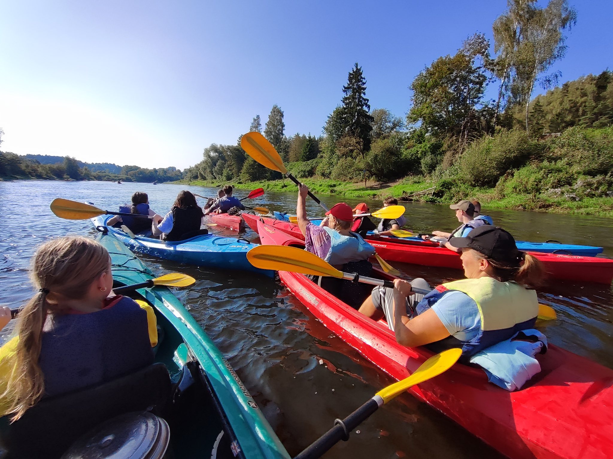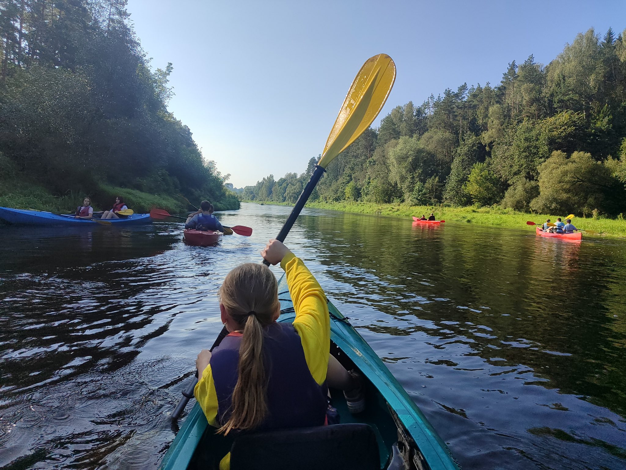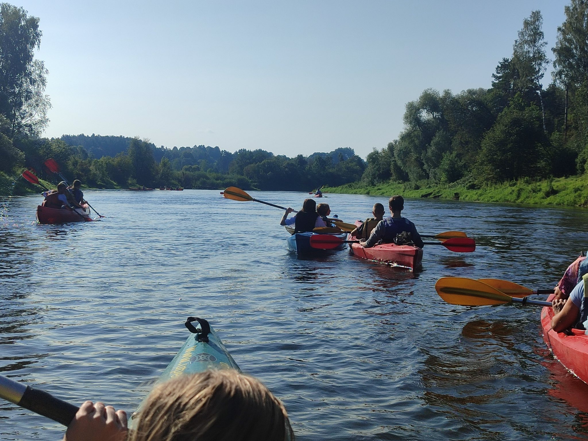 Šiandien buvo neįtikėtinai nuostabi pirmosios mokslo metų savaitės pabaiga. Pradėjome „Judumo savaitę“ – judėjimo ir aktyvaus gyvenimo skatinimo projektą. Plaukimas baidarėmis tapo pirmąją šio projekto veikla, į kurią įsitraukė net 50 vaikų ir mokytojų. Plaukimą Šventosios upe pradėjome Vepriuose, o pabaigėme Upninkuose. Kai kam tai buvo pirmoji plaukimo baidare pamoka, kai kam – pirmasis plaukimas Šventosios upe, tačiau visi finišą pasiekė stipriai patobulėję. Saulė, upė ir gera kompanija nepaliko abejingo nei vieno, norėjosi dar plaukti ir plaukti. Dėkojame plaukimą organizavusiai mokytojai Laimai Pabriežienei, lydėjusioms mokytojoms ir ypatingai ačiū už pagalbą kartu plaukusiam tėčiui Donatui Grigeliui.