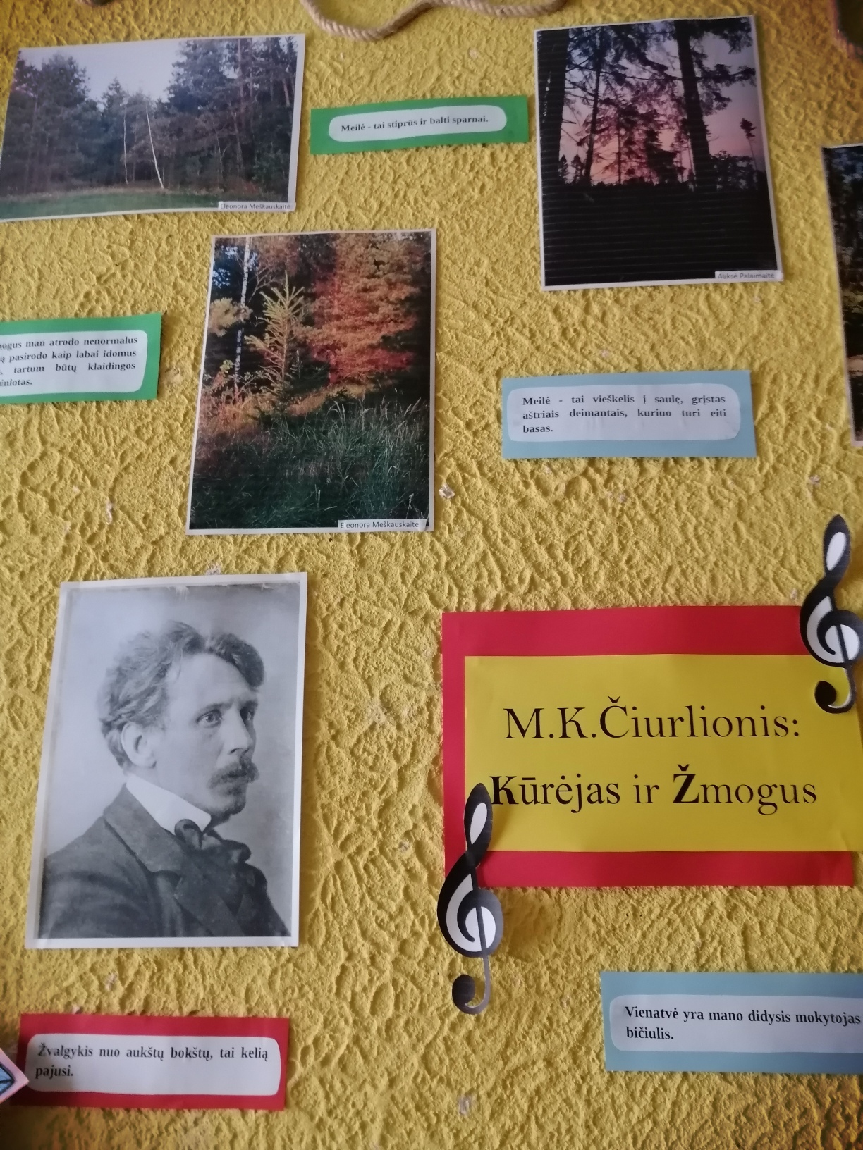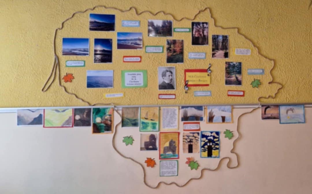 Gelvonų gimnazijoje vyko integruotas dailės ir dorinio ugdymo projektas „M. K. Čiurlionis: Kūrėjas ir Žmogus“ (mokytojos Andžela Varanienė ir Danutė Unčiurytė), skirtas didžiojo menininko 150-osioms metinėms paminėti. Su genijaus asmenybe ir kūryba mokiniai išsamiai susipažino per dorinio ugdymo pamokas. Vyresnių klasių mokiniai gavo užduotį gamtoje ieškoti įkvėpimo: fotografavo mišką, dangų, jūrą ir kt. Kiekviena nuotrauka tapo tarsi jų pačių mažas meno kūrinys, įsiliejęs į žymias simfonijas ,,Jūra“ ir ,,Miške“, kurios skambėjo pertraukų metu. 6 klasės mokiniai piešė pagal dailininko kūrinius. Kiekvienas, išsirinkęs patikusį paveikslą, bandė jį atkartoti naudojant panašią techniką – sausą pastelę. Darbai buvo pristatyti gimnazijos bendruomenei, kuri galėjo palyginti mokinių ir garsaus Kūrėjo šedevrus. M. K. Čiurlionio kūryba kviečia svajoti, mąstyti ir kurti. Švęsdami jo gimtadienį, prisimename Jį, kaip ypatingą Žmogų ir Kūrėją, kuris paliko Lietuvai ir pasauliui neįkainojamą dovaną.