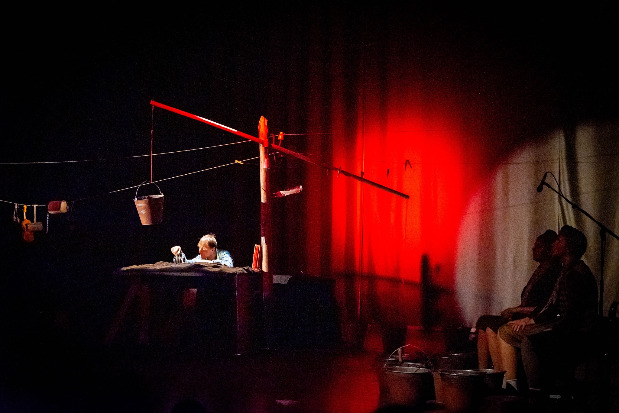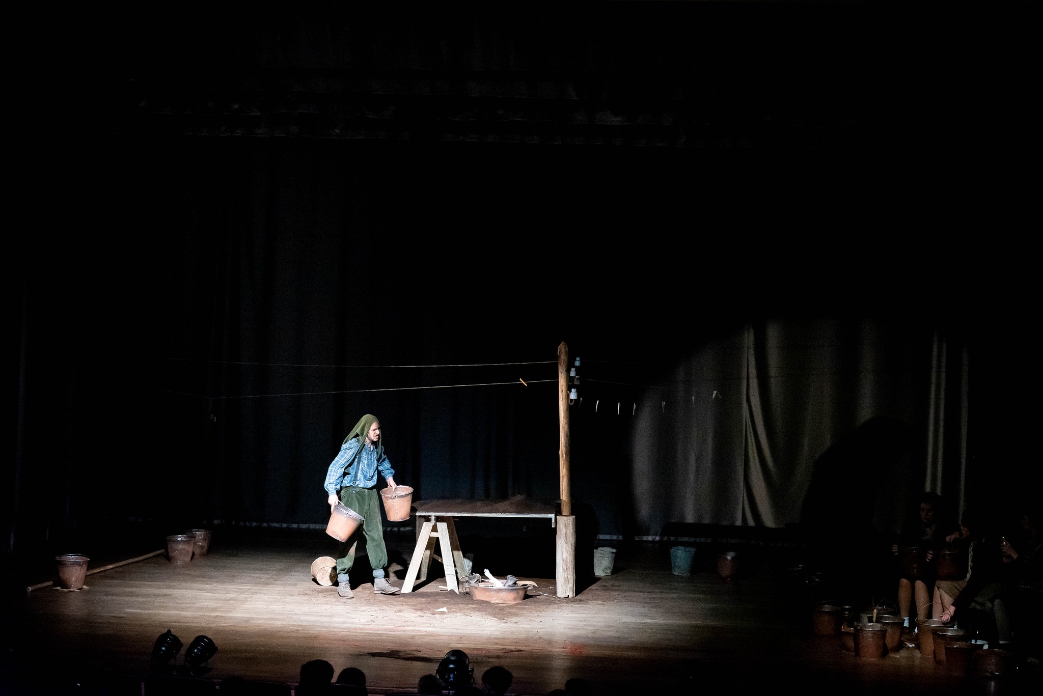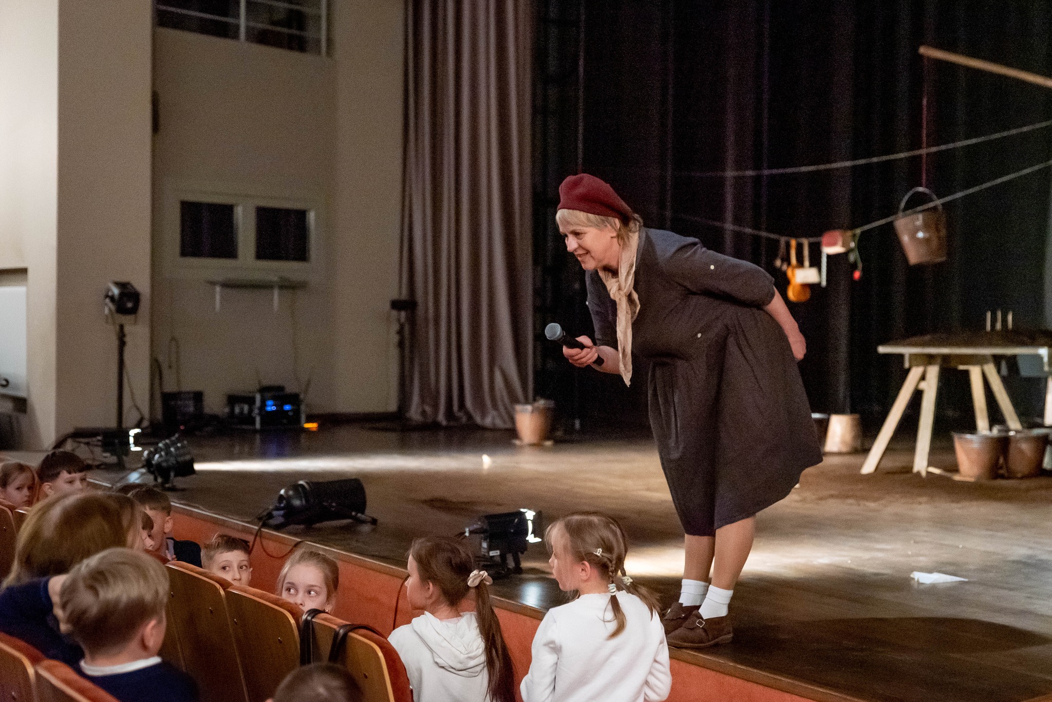 Gelvonų gimnazijos pradinukai taip pat stebėjo šį spektaklį ir susipažino su STALO TEATRO aktoriais.