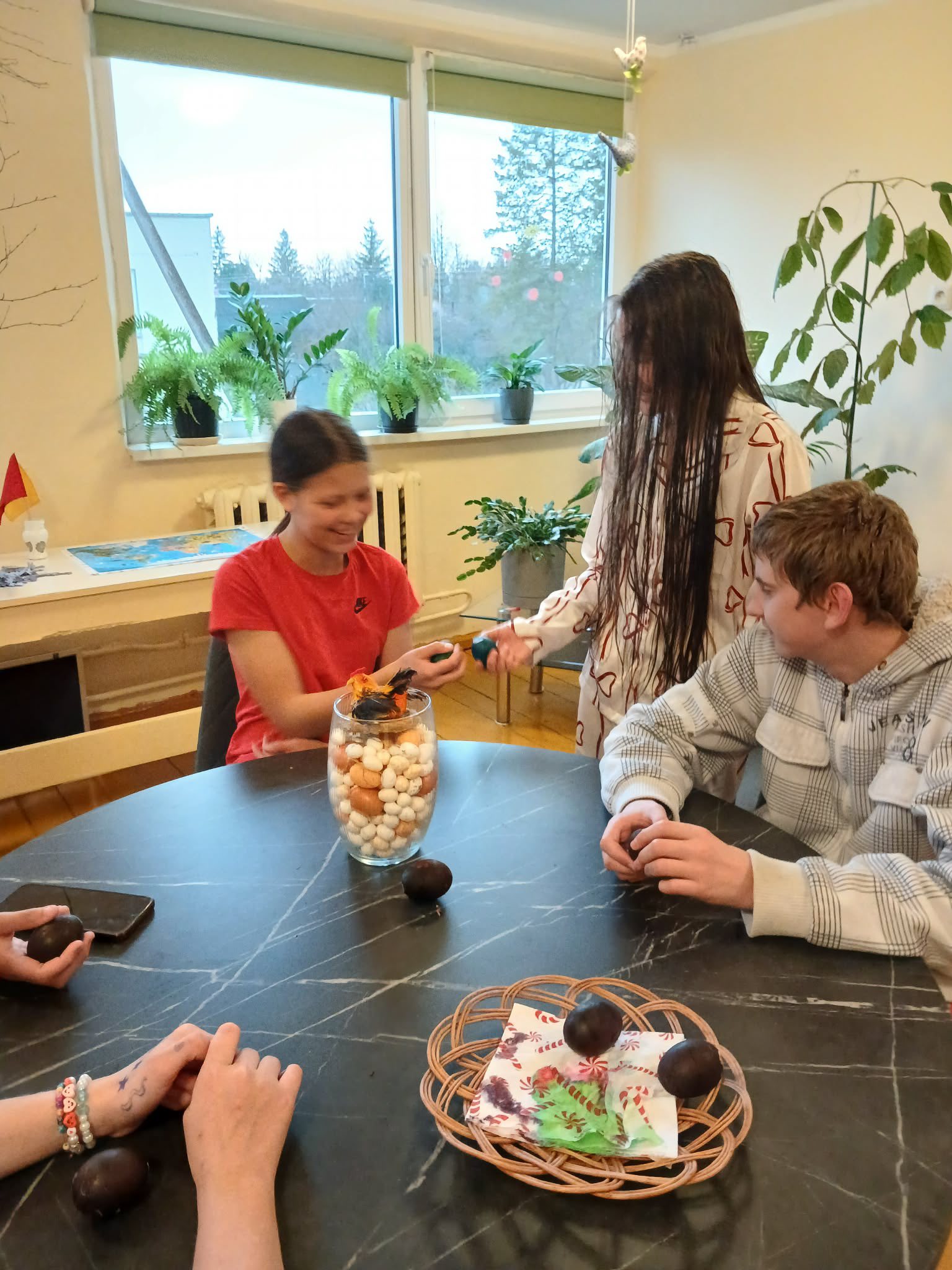 Velykų laukimas gimnazijos bendrabutyje gyvenantiems mokiniams tapo ypatingai jaukus ir kūrybiškas. Margutis – Velykų simbolis, susijęs su gyvybe, atsinaujinimu, prisikėlimu. Vaikai su dideliu susidomėjimu susipažino su tradiciniais kiaušinių marginimu būdais, kruopščiai dėliojo, vyniojo ir stebėjo, kaip paprastas kiaušinis pamažu virsta spalvingu margučiu. Neatsiejama Velykų tradicijos dalis – kiaušinių mūšis, kurio metu tikrinamas margučių tvirtumas. Daug džiugių emocijų suteikė draugo kiaušinio daužymas, tikrinant jo tvirtumą. Smagu kartu puoselėti gražias Velykų tradicijas, ugdyti vaikų kūrybiškumą, kantrybę ir patirti bendrystės džiaugsmą. Tokios akimirkos ne tik kuria šventinę nuotaiką, bet ir palieka gražius prisiminimus.